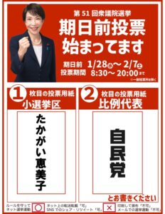 1月27日(火)に第51回衆議院議員選挙が公示され、選挙も残すところ7日となりました。責任ある積極財政のもとで、「日本列島を、強く豊かに。」をキャッチフレーズに日本国民に信を問うということで、大変急な選挙となりました。新たな政権の枠組みができ、今後力強い活動をするためには、国民の皆様のご理解と後押しが不可欠と判断されたのだと思います。
